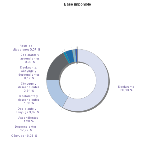 Declarante = 84.602Cónyuge = 17.087Descendientes = 14.659,667Ascendientes = 1.215,5Declarante y cónyuge = 10.380Declarante y descendientes = 4.170,833Cónyuge y descendientes = 1.794Declarante, cónyuge y descendientes = 694,5Declarante y ascendientes = 258,5Resto de situaciones = 153,5 Declarante = 1.341.211,817Cónyuge = 391.952,12Descendientes = 399.136,247Ascendientes = 27.778,074Declarante y cónyuge = 84.734,324Declarante y descendientes = 36.857,31Cónyuge y descendientes = 19.303,364Declarante, cónyuge y descendientes = 3.897,849Declarante y ascendientes = 1.761,782Resto de situaciones = 1.658,365 Declarante = 169.128,564Cónyuge = 40.080,484Descendientes = 54.930,254Ascendientes = 2.975,443Declarante y cónyuge = 4.226,029Declarante y descendientes = 3.168,759Cónyuge y descendientes = 1.012,153Declarante, cónyuge y descendientes = 98,264Declarante y ascendientes = 96,705Resto de situaciones = 95,449 Declarante = 220.468,138Cónyuge = 146.000,31Descendientes = 109.173,828Ascendientes = 8.896,755Declarante y cónyuge = 50.307,075Declarante y descendientes = 18.588,594Cónyuge y descendientes = 10.842,517Declarante, cónyuge y descendientes = 3.401,094Declarante y ascendientes = 1.203,245Resto de situaciones = 965,369