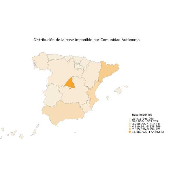 Principales variables por Comunidad Autónoma y por signo de la base imponible