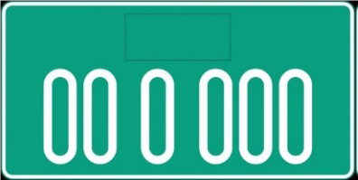 - Placa de matrícula especial rectangular con caracteres en verde, para manipulación permanente, con entre cinco y siete caracteres, el primero de los cuales corresponde a una letra que representa la subdivisión territorial seguida de cifras.