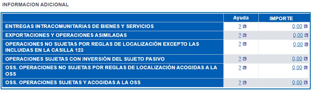 - Base impoñible de TODAS as operacións non suxeitas por regras de localización acollidas á OSS .