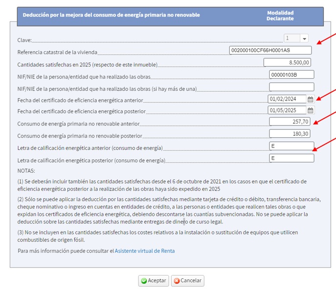Deducció per obres per a la millora en el consum d'energia primària no renovable