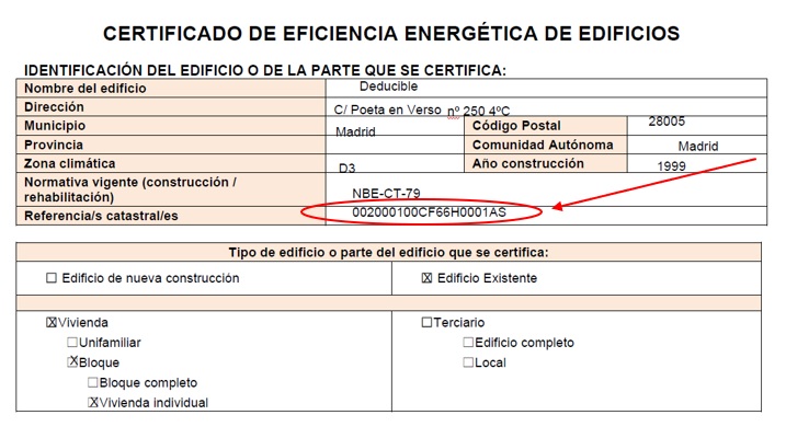 La referència cadastral i la data del certificat consten en la primera pàgina del certificat d'eficiència energètica, on consten les dades identificatives del certificat.