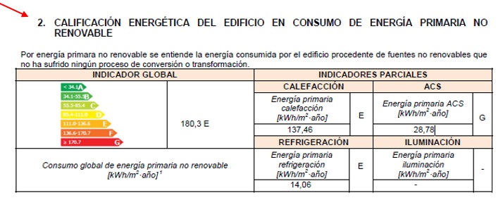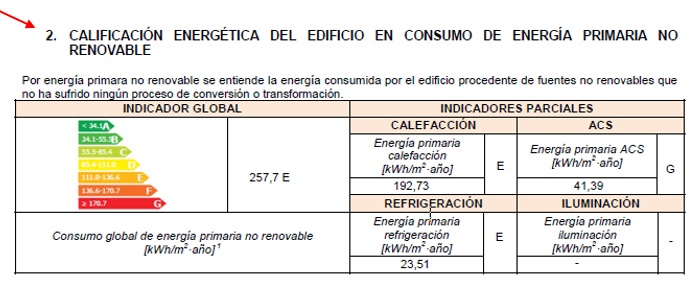 La qualificació energètica de l'habitatge en consum d'energia primària no renovable consta en l'apartat 2 de l'Annex II de cadascun dels Certificats d'eficiència energètica: