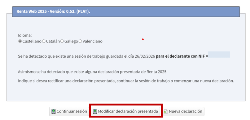 Per a rectificar, completar o modificar les autoliquidacions presentades d' IRPF 2025, una vegada realitzades les modificacions necessàries en l'apartat de Renda Web "Modificar declaració Renda 2025 ja presentada" se seleccionarà l'opció d'autoliquidació rectificativa.
